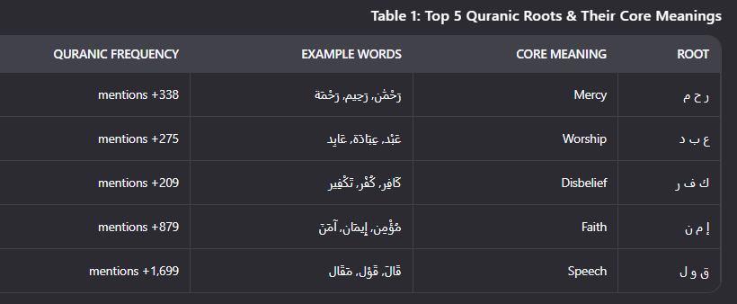 According to the Quranic Arabic Corpus (corpus.quran.com), just 565 root words make up 81.6% of the Quran’s vocabulary. This means that with focused, strategic learning, you can achieve meaningful comprehension far sooner than you think.